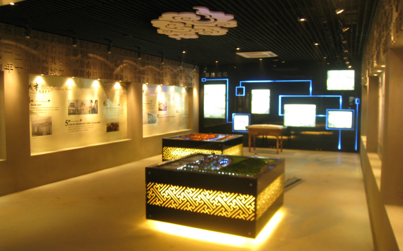 展示了上饶市的历史沿革、城市发展节点,采用高科技的电子翻书形式重现了上饶的老照片;另摆放了两个复古模型。